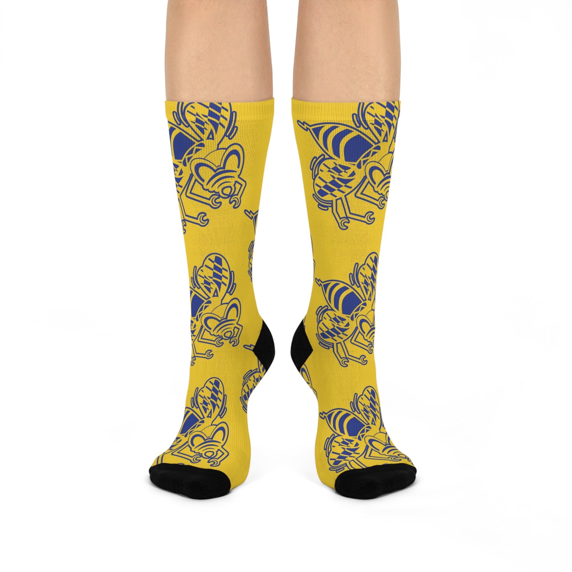 Staunton High School Yellow Jackets - Crew Socks - yellow jacket blue on yellow