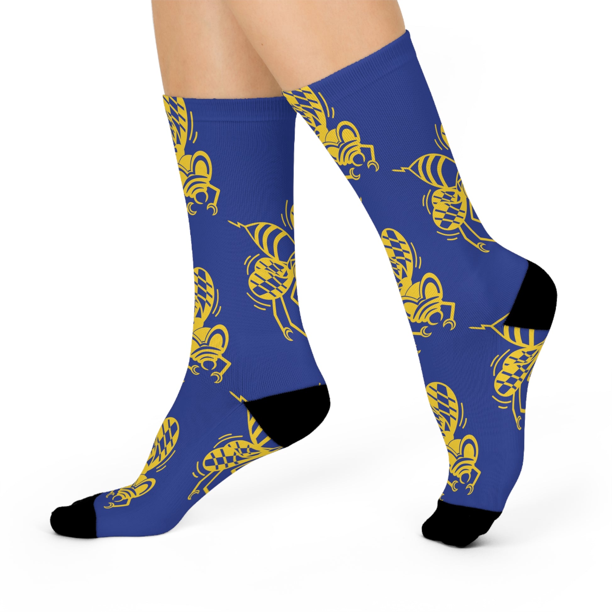 Staunton High School Yellow Jackets - Crew Socks - yellow jacket yellow on blue