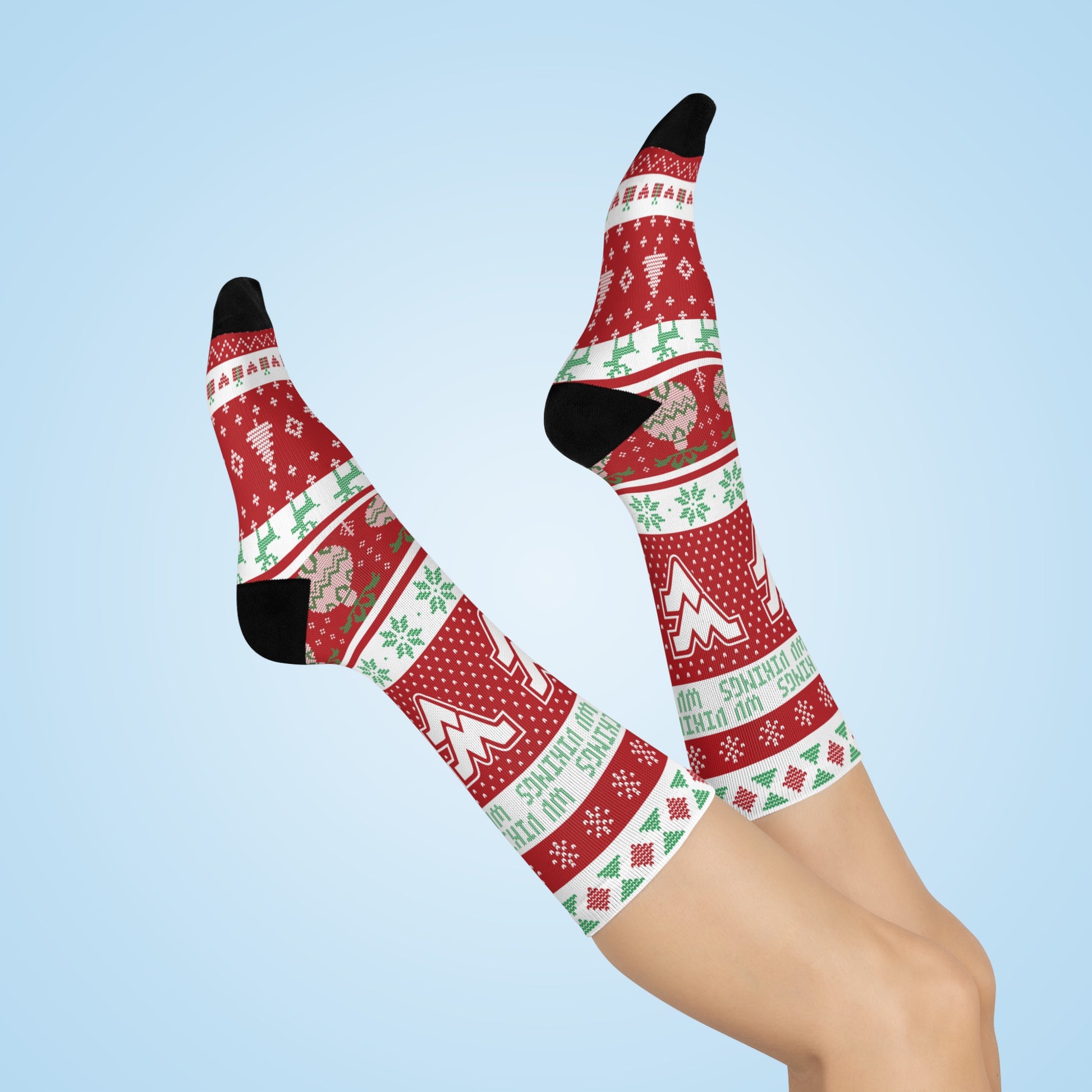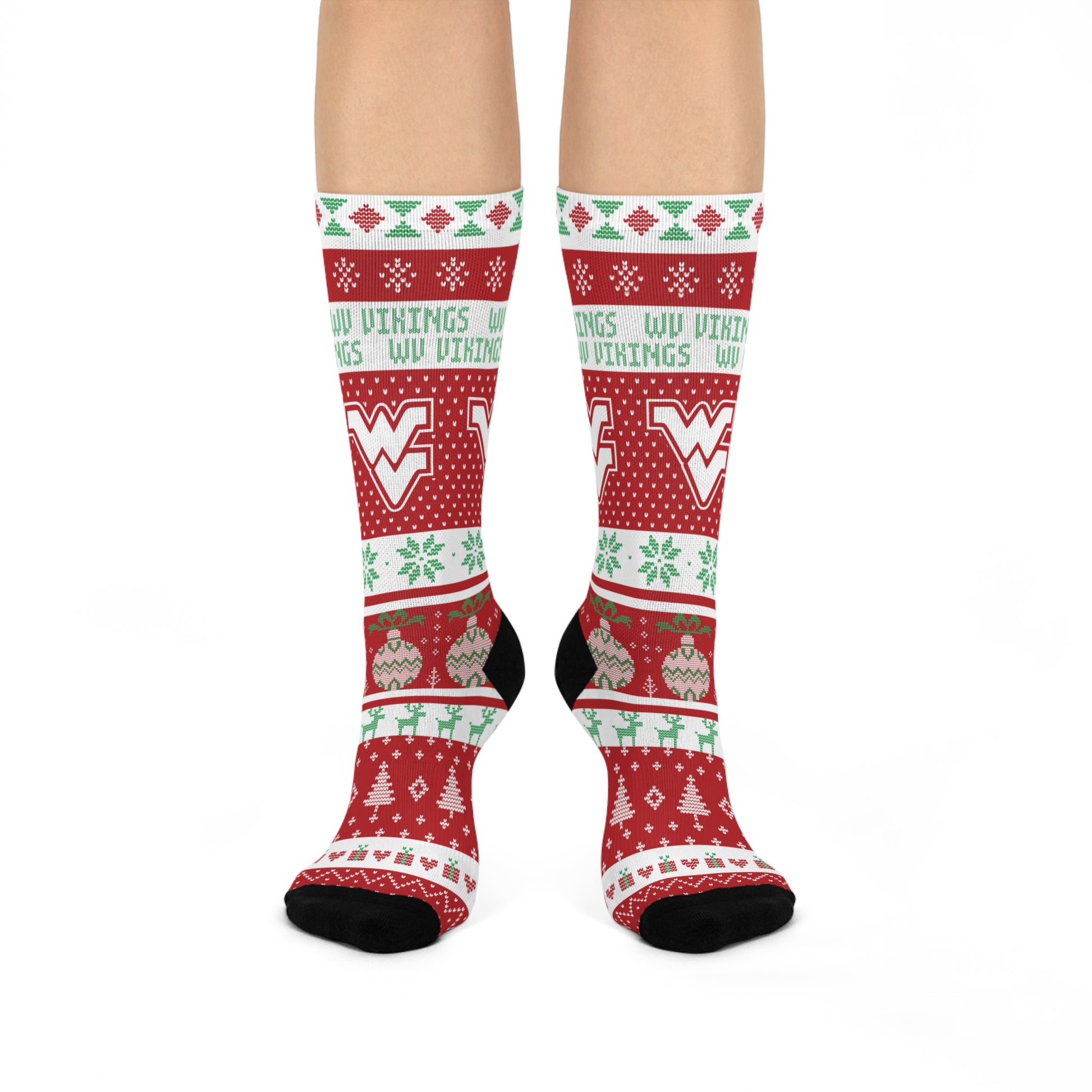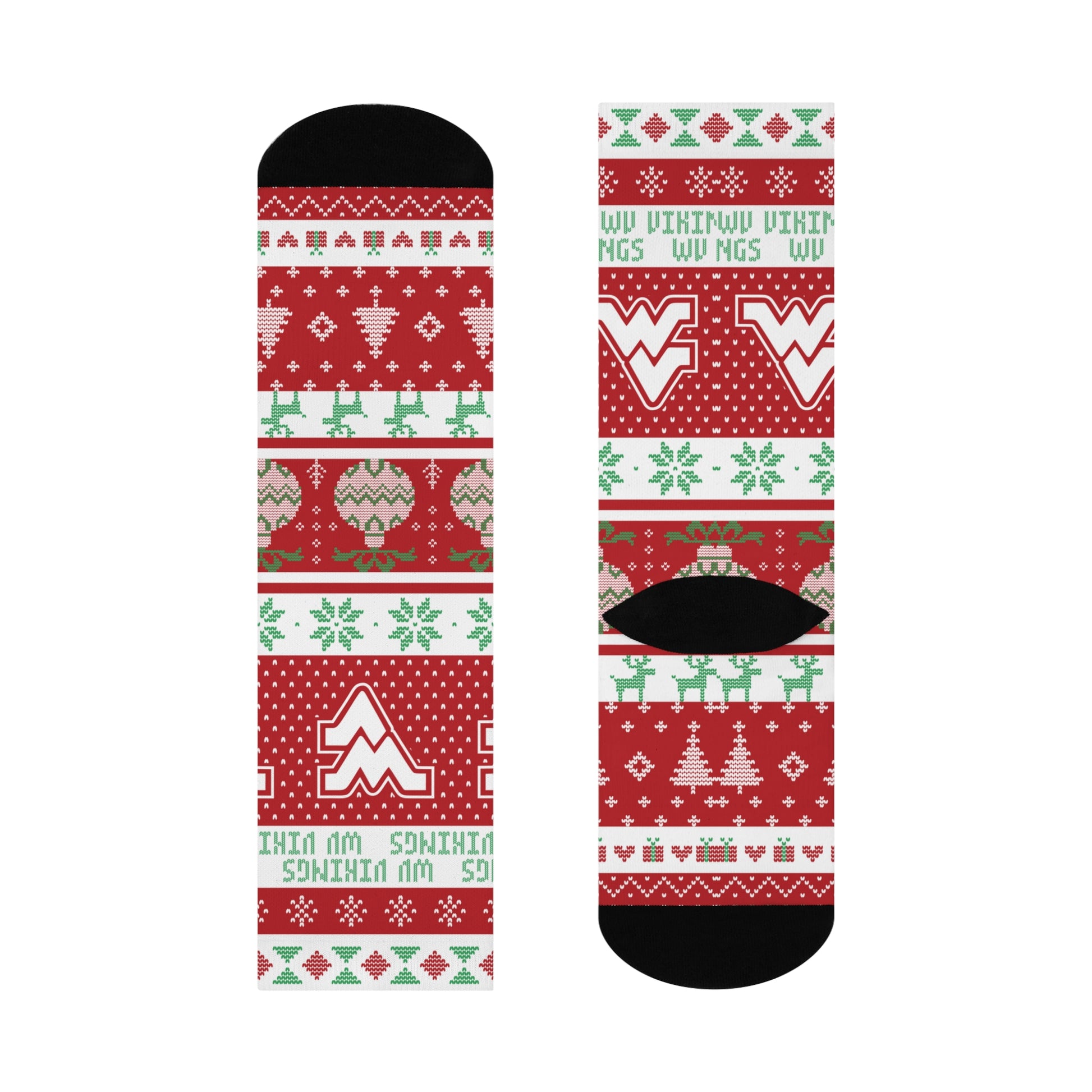 West Vigo HS Vikings - Ugly Christmas Sweater inspired Crew Socks - red
